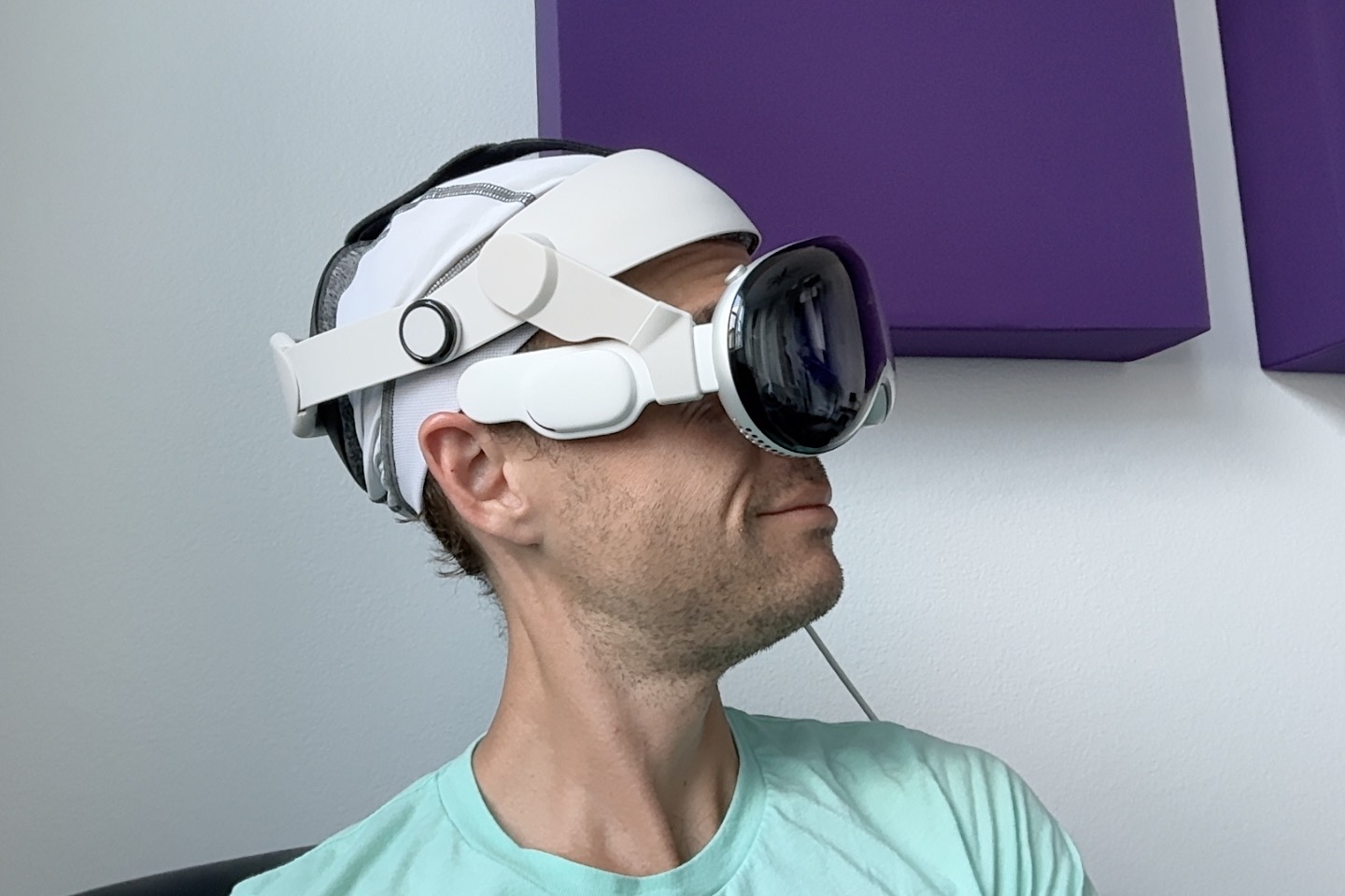 Also pictured, I've started wearing a cycling skull cap when I work with Vision Pro to prevent the spread of my ethnic greases onto the cushions themselves. By regularly washing the cap, I don't have to worry about having an acne breakout as a 40-year-old man. An ounce of prevention and all that.