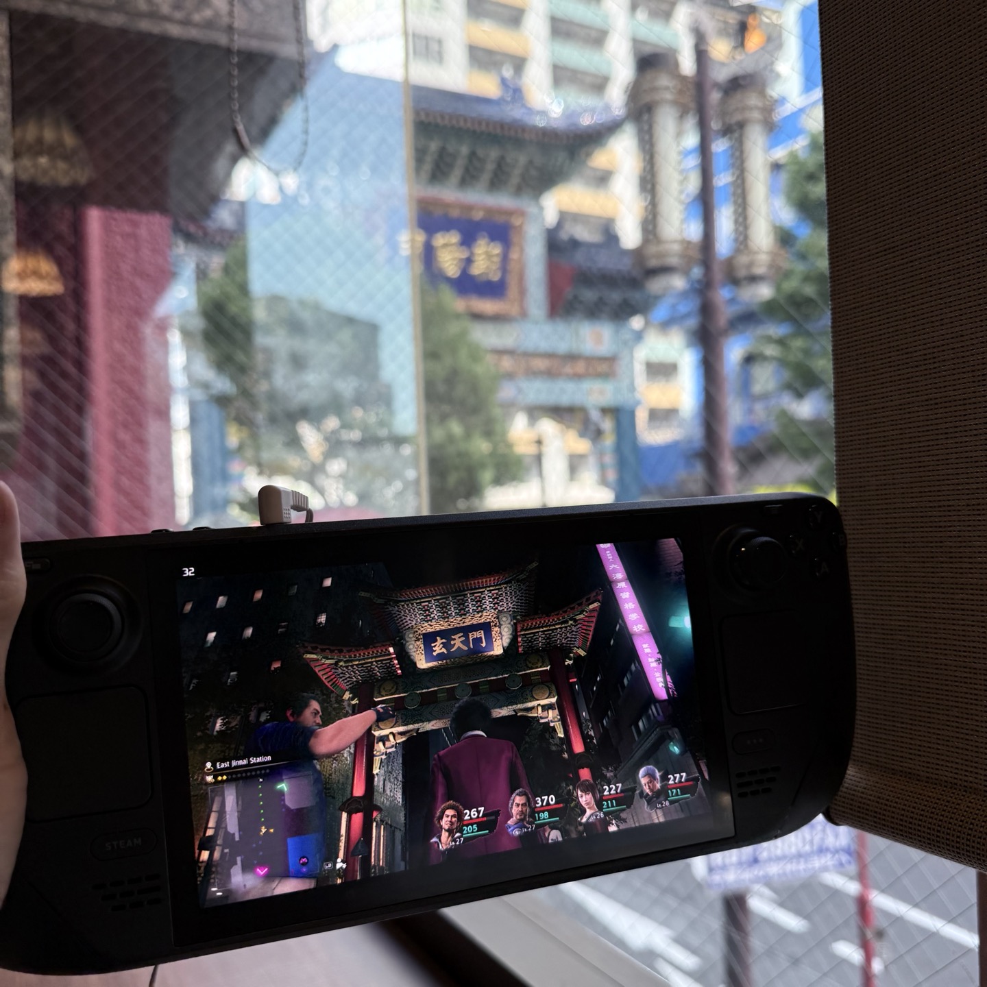 Was hunkered down at a cafe in Yokohama's Chinatown earlier this week while waiting for Becky to finish a workout and looked up from my Steam Deck to notice I was simultaneously standing under the same gate in Like a Dragon: Yakuza's