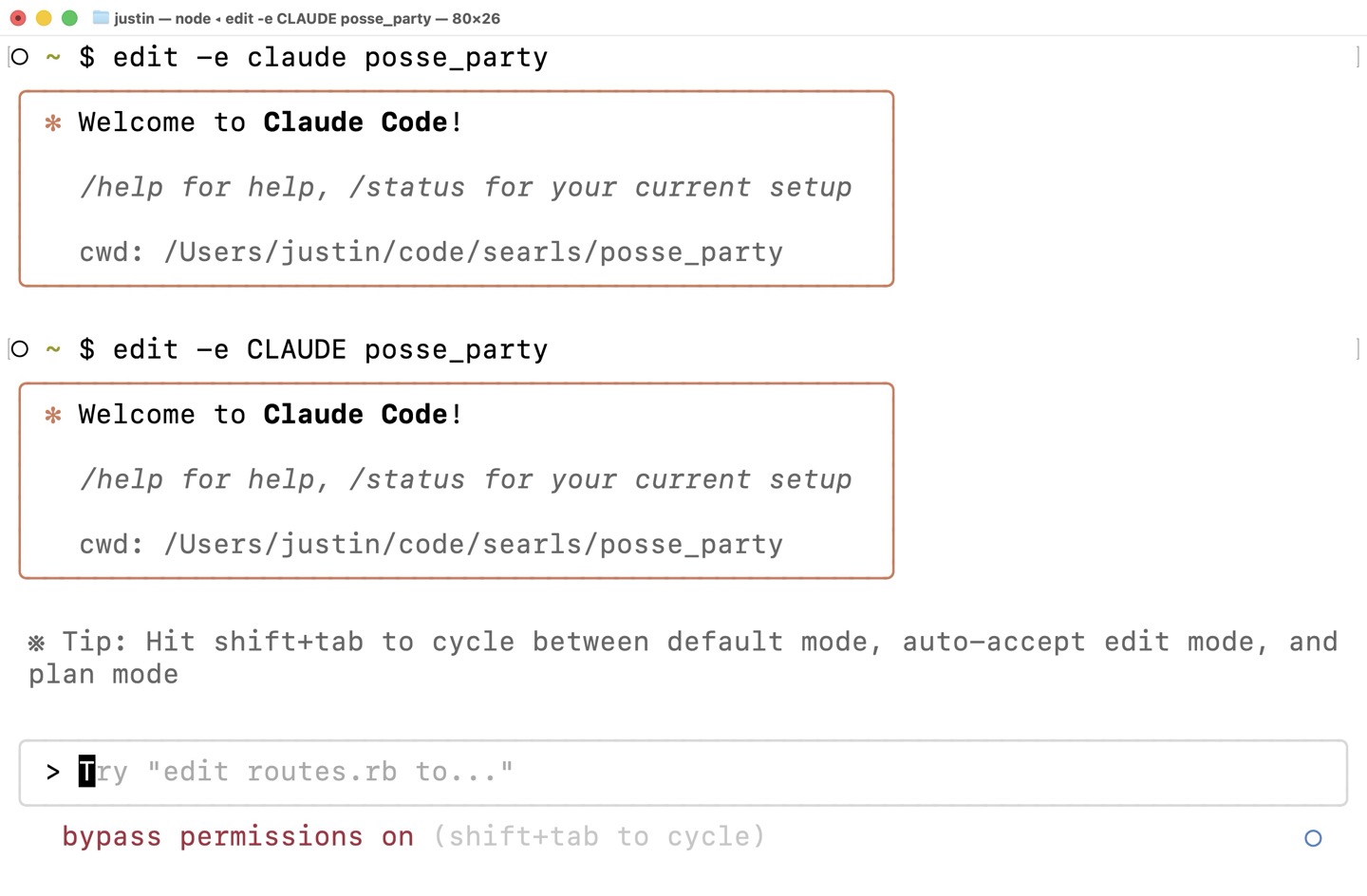 $ edit -e CLAUDE posse_party