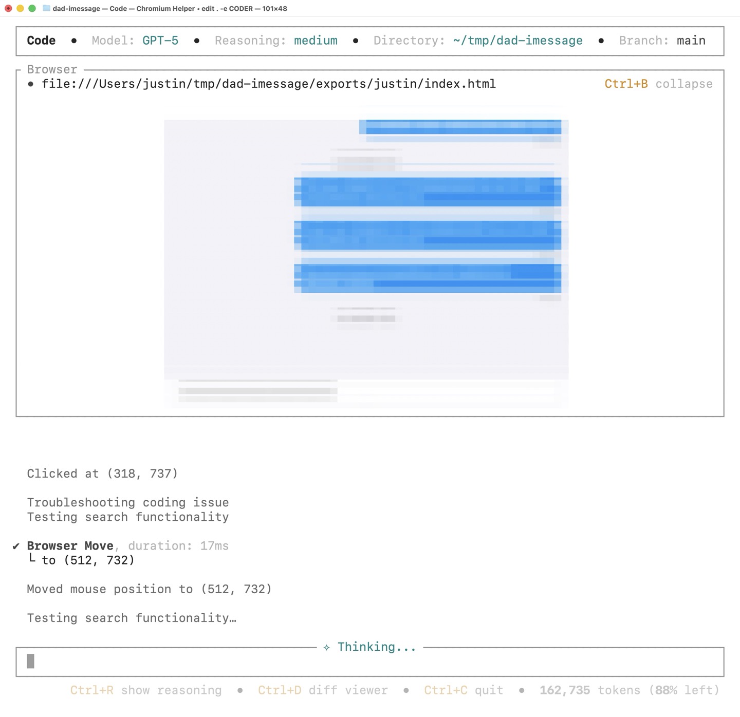 eto request an explanation of the specific change you're looking at - Built-in browser support with ASCII previews (Ctrl+B) Like Playwright, it automates browsers over the very fast CDP, and it takes zero futzing to get started with it (unlike tacking an MCP tool onto Claude)