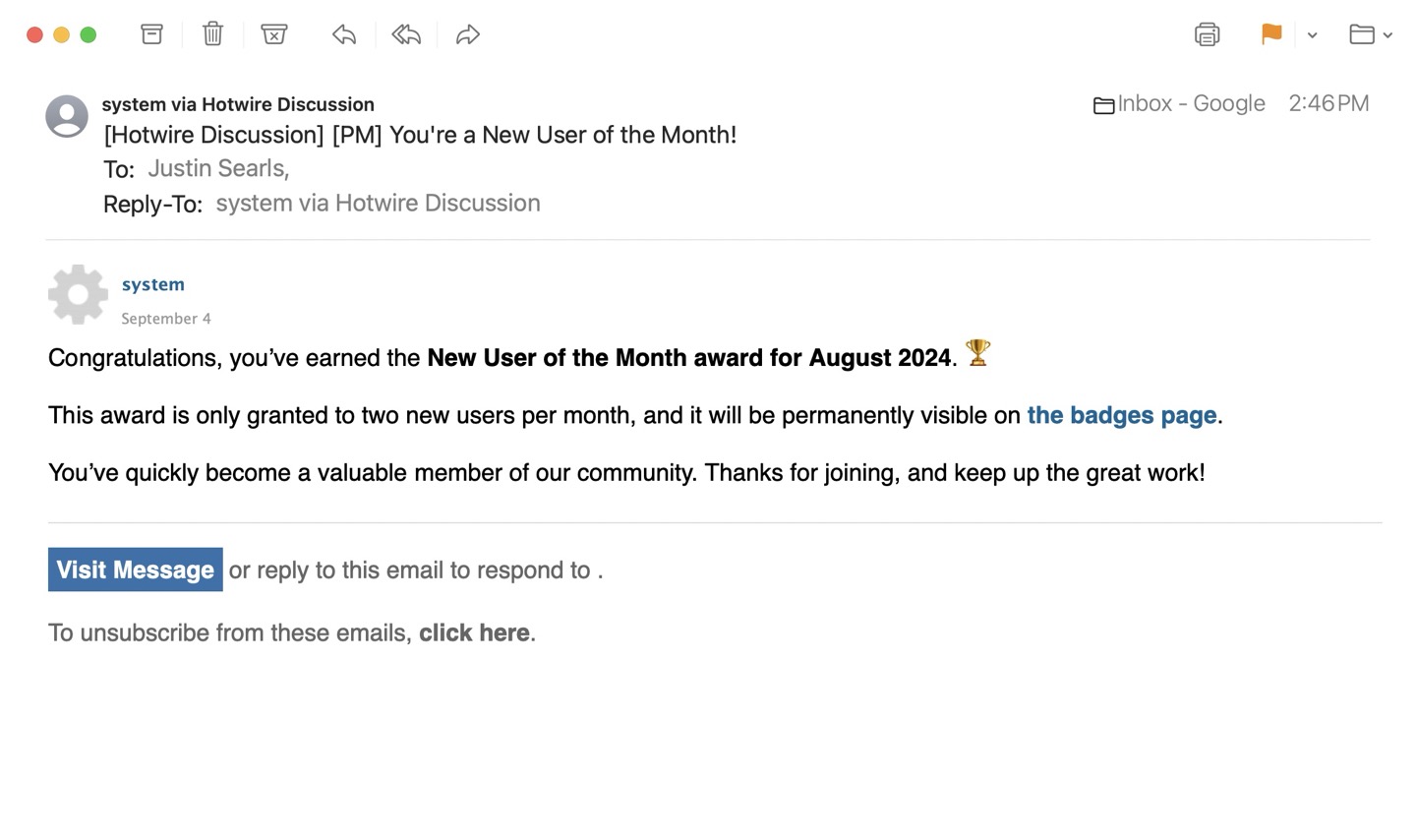 Why should you come to my Rails World talk about building an app? Look no further than my latest credential. Hotwire user of THE WHOLE MONTH.*