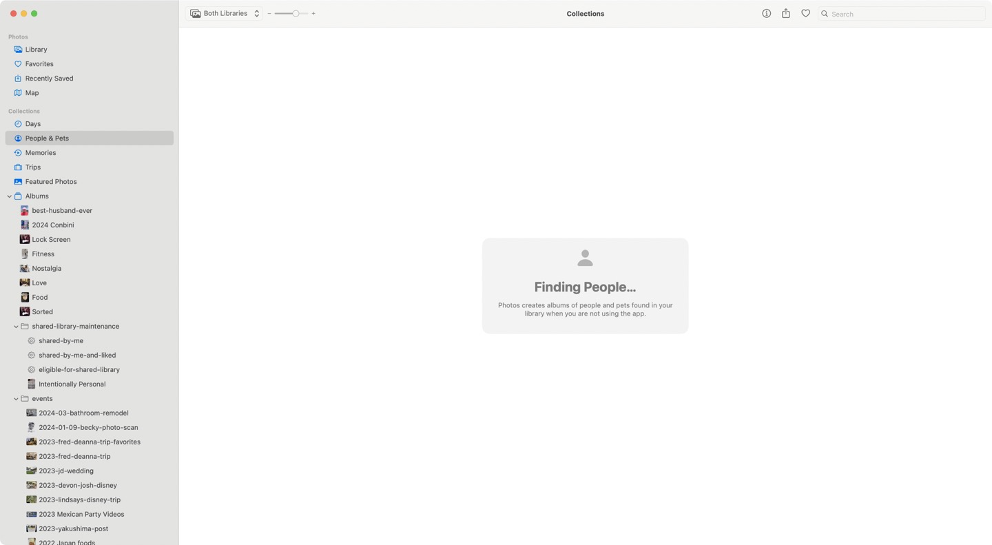 - Don't touch anything. Over the next several days while Photos is "finding people", anyone you name or any people you attempt to merge may (will?) disappear entirely