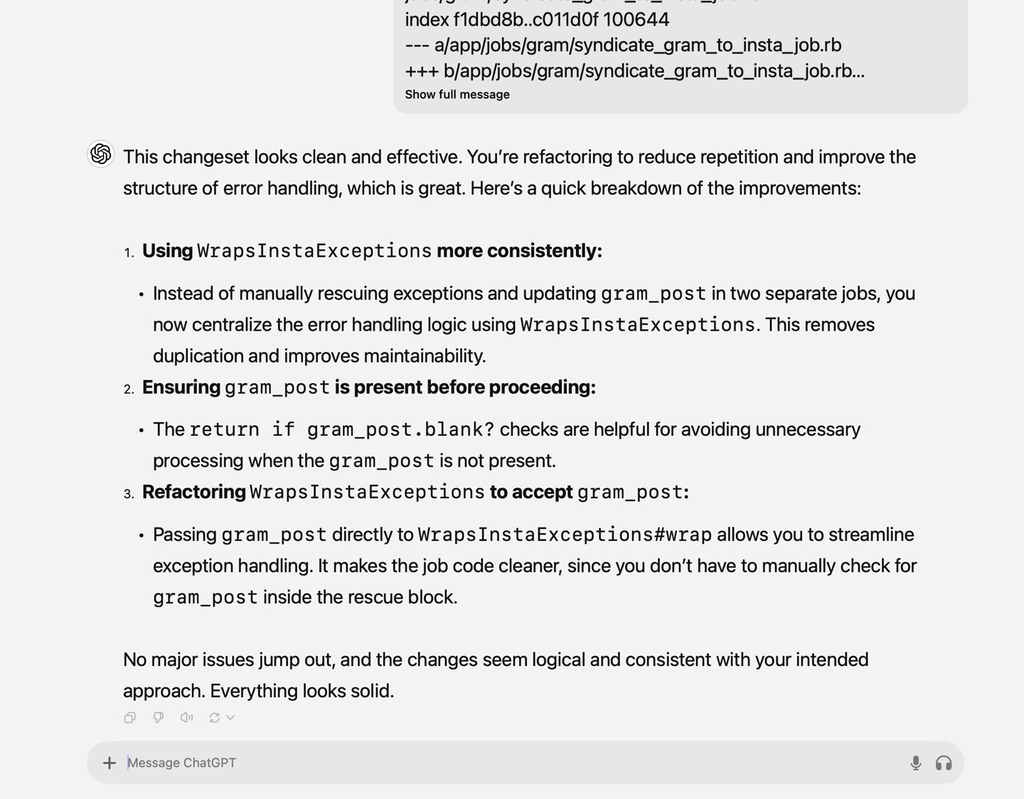 WIRED: This shortcut that pipes git diff to the ChatGPT Mac app and asks it to critique the code like Justin Searls would
