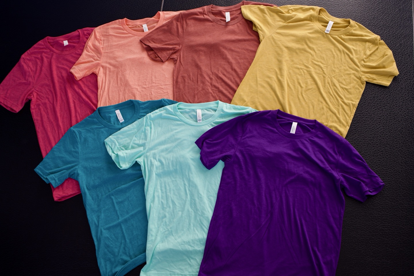 New brand of T-shirt (Bella Canvas) for the uniform. Fresh colors to mark the start of what's next.