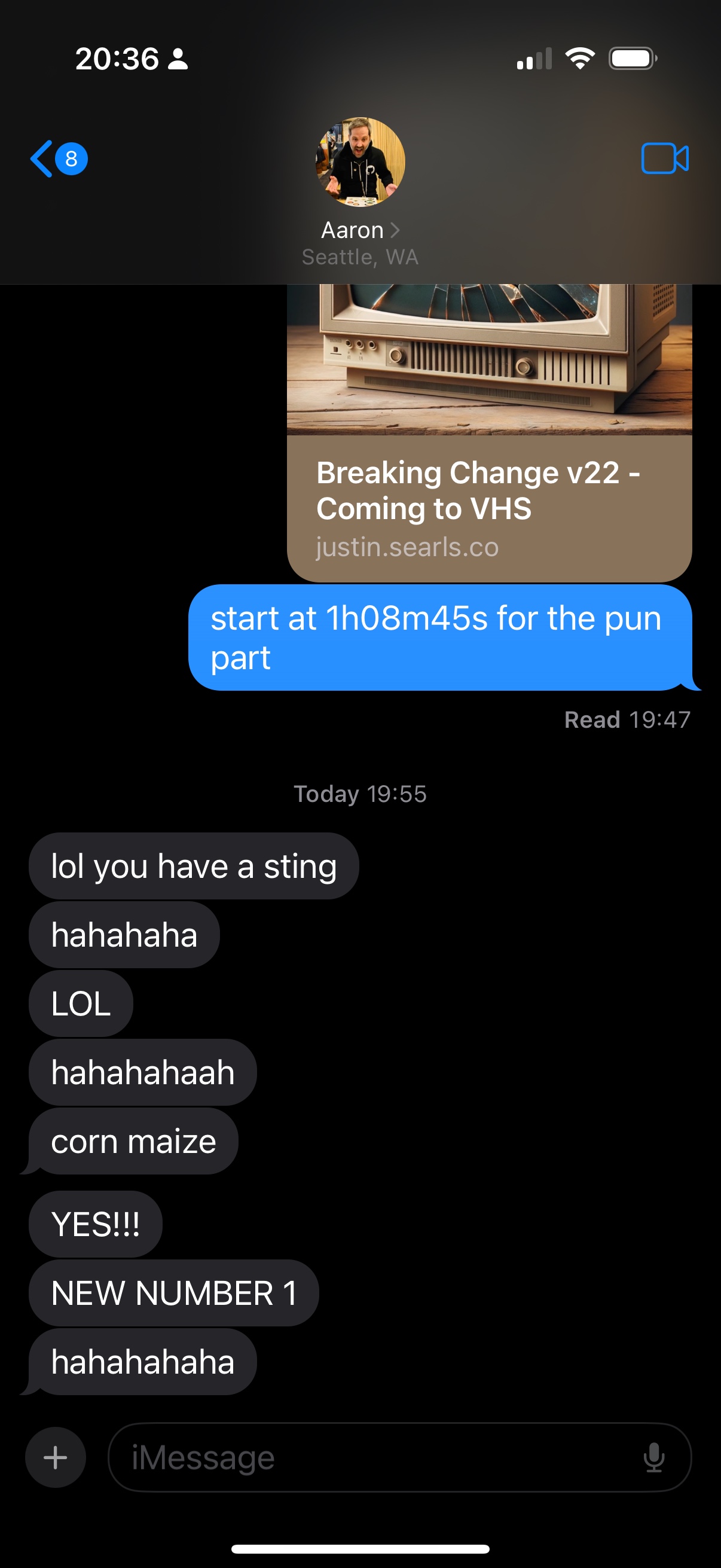 Aaron's reaction to my reading and ranking of his pun submission for the latest version of the Breaking Change podcast