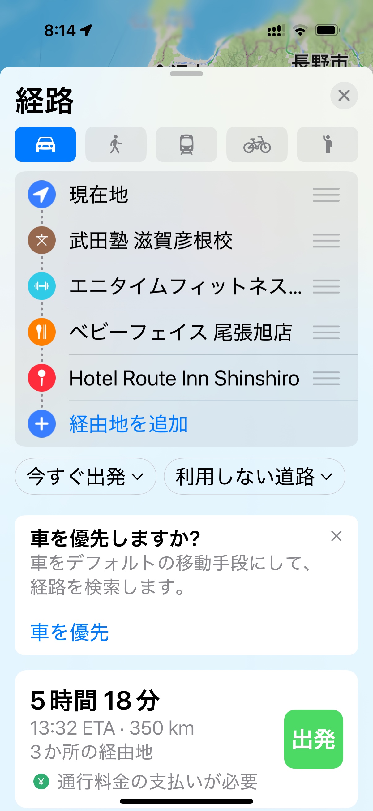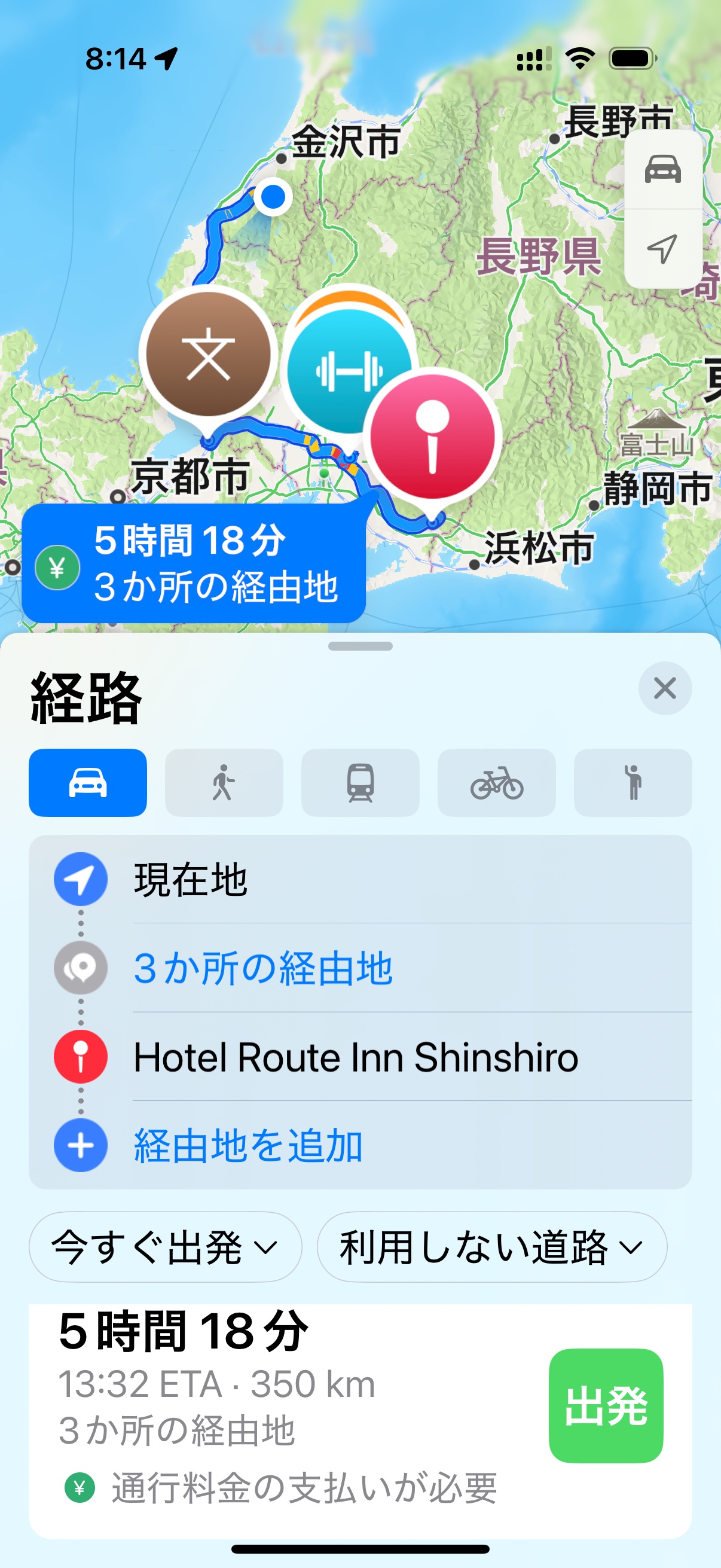 I have always been willing to suffer Apple Maps in exchange for its tighter platform integration than its competitors, but at least in America and Japan specifically, it has really leapfrogged Google Maps in recent years. Not only in map accuracy, but also general usability. I only today realized I could plan out multi-stop journeys. This allowed me to plan a drive from rural Kanazawa to my adopted hometown of Hikone, an Anytime Fitness in a suburb of Nagoya, a nearby Babyface Planets for dinner (fantastic Omurice btw), before eventually landing at our hotel in Shinshiro.